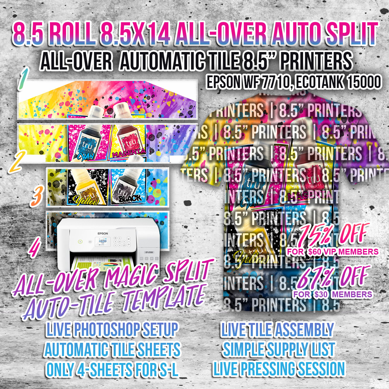 E8.5x14 + 8.5"Roll AllOver Sublimation AutoTile Template 13x19 Tile