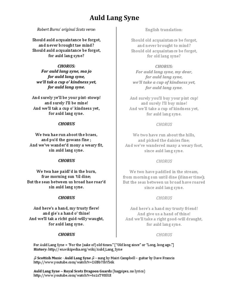Auld Lang Syne Lyrics in Scots and English Robert Burns Scotland
